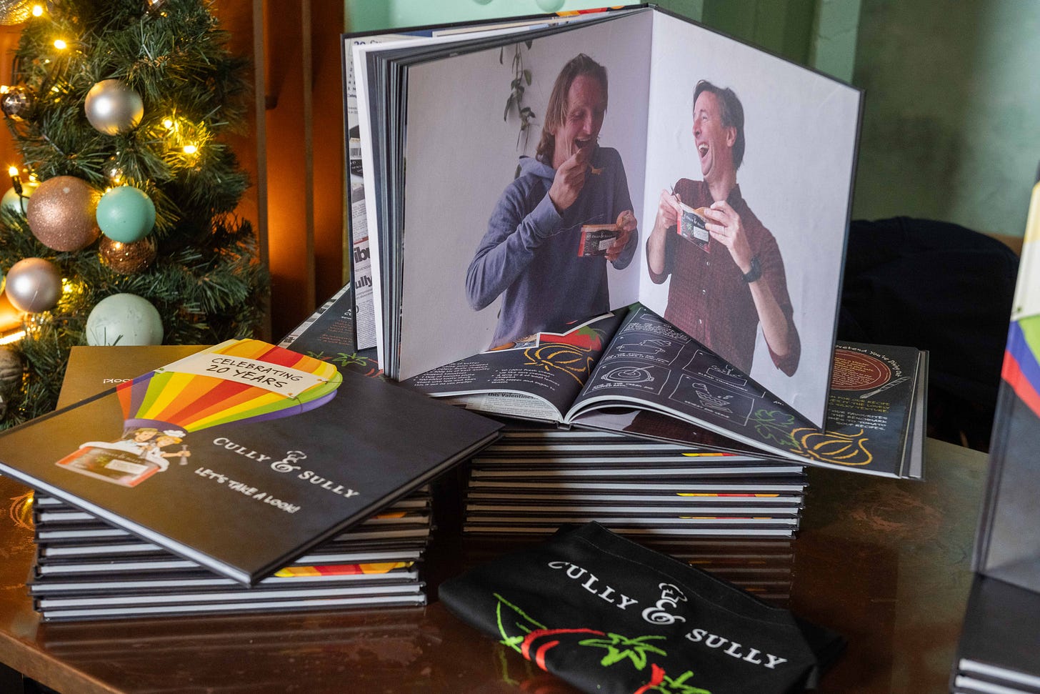 The guys have been doing those heavy schedules for two decades now, and have produced a neat, funny book to mark 20 years in business. It has their classic recipes – the pea soup; the haddock and salmon chowder; the fish pie. These are dishes we know well, because our kids lapped them up when they were younger, especially the shepherd’s pie and the chicken and vegetable soup. We still own some of the ceramic dishes in which the original C&S recipes were sold.