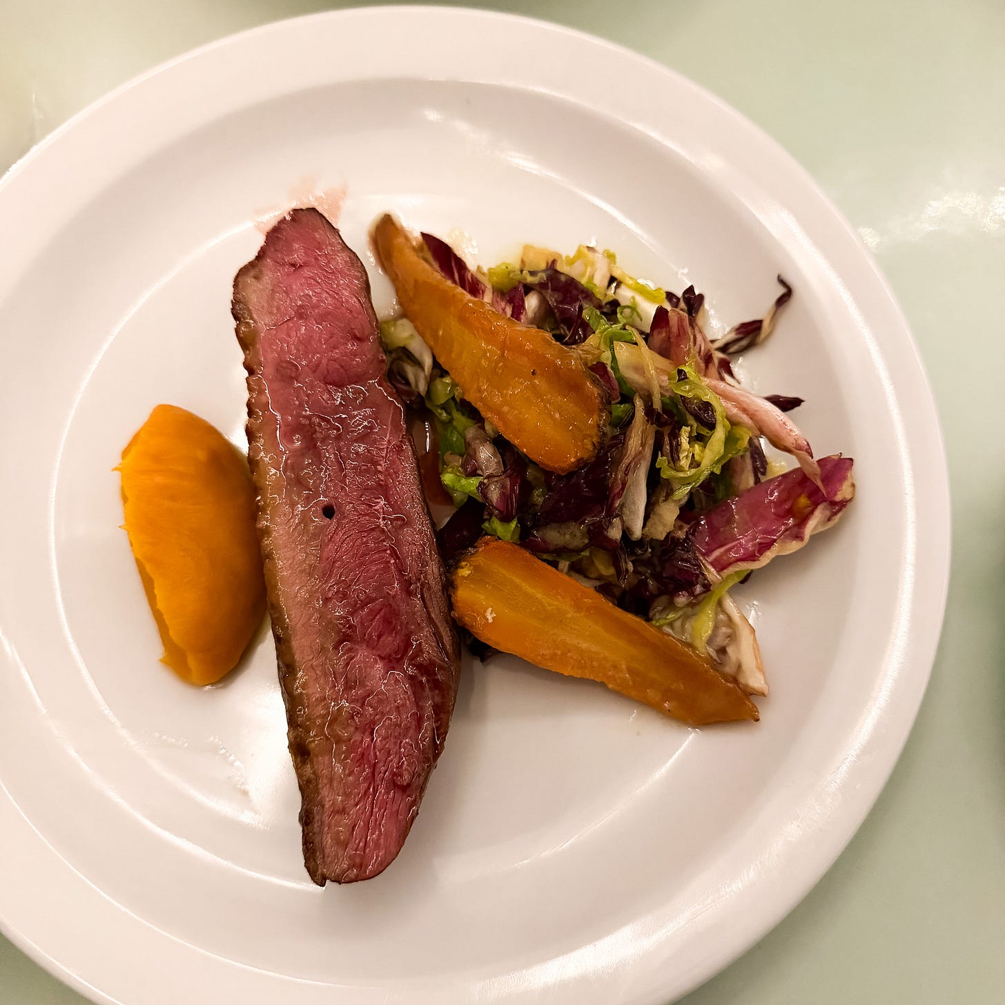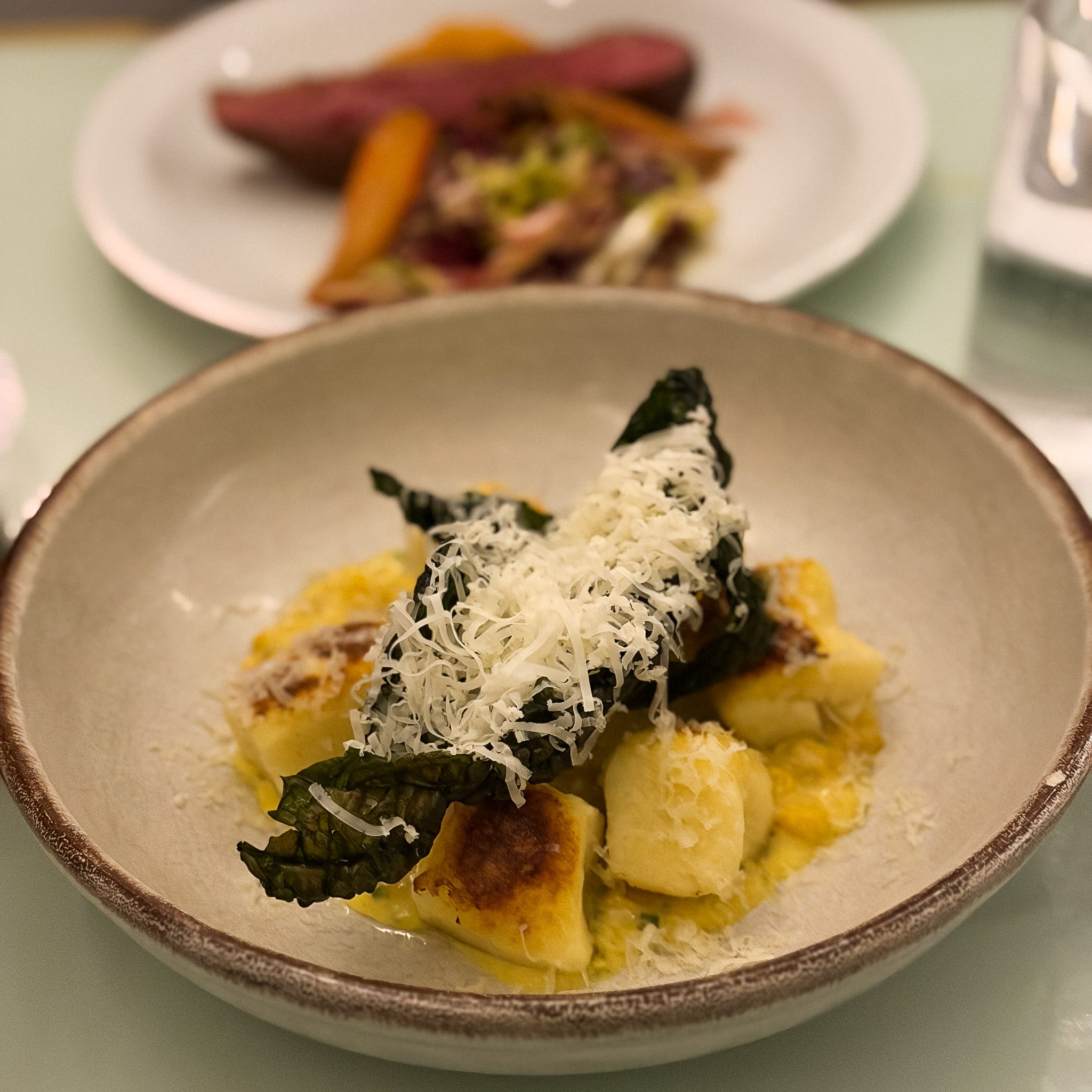 We chose gnocchi with sweetcorn, preserved lemon, Comté and cavalo nero and also the duck breast with orange, carrot, radicchio and sprouts, from the menu of large plates which also offers a braised short rib with anchovy dressing.