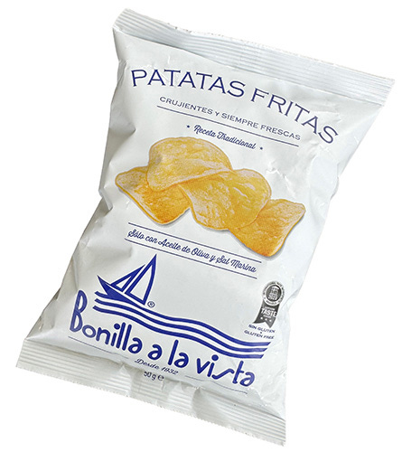 These crisps from the family-owned Bonilla a la Vista list their ingredients on the packet in no less than eight languages. and why wouldn’t they. Ingredients (in order of quantity) are potatoes, olive oil and sea salt.