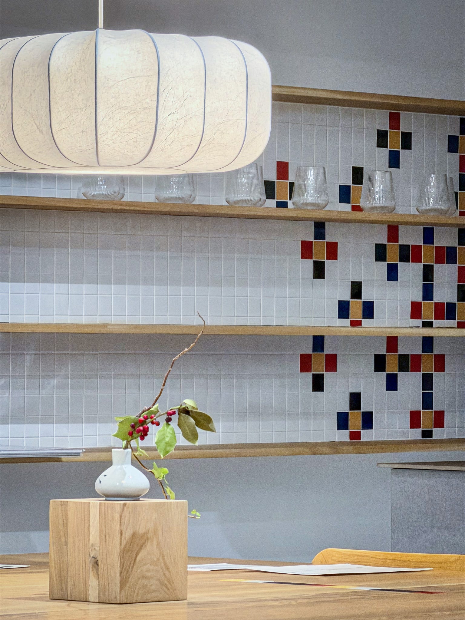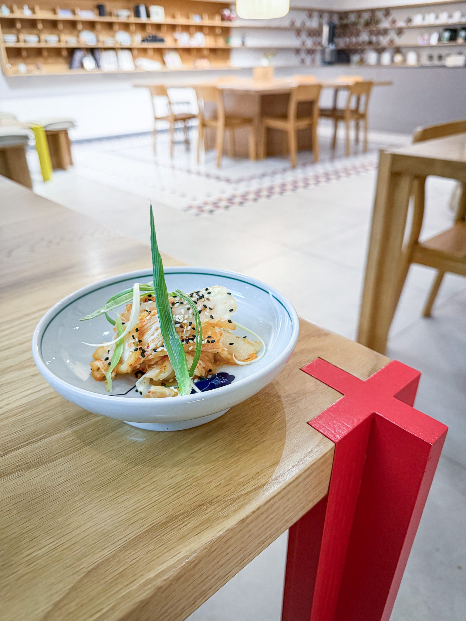 It looks like a design studio, the sort of space where creatives in black roll necks might gather to work through ideas. It’s pure gorgeous, a tribute to modern Korean aesthetics in wood, steel and tile designed by the Korean firm Little Forest, and one which pays particular tribute to Obangsaek, the traditional Korean philosophy of five colours.