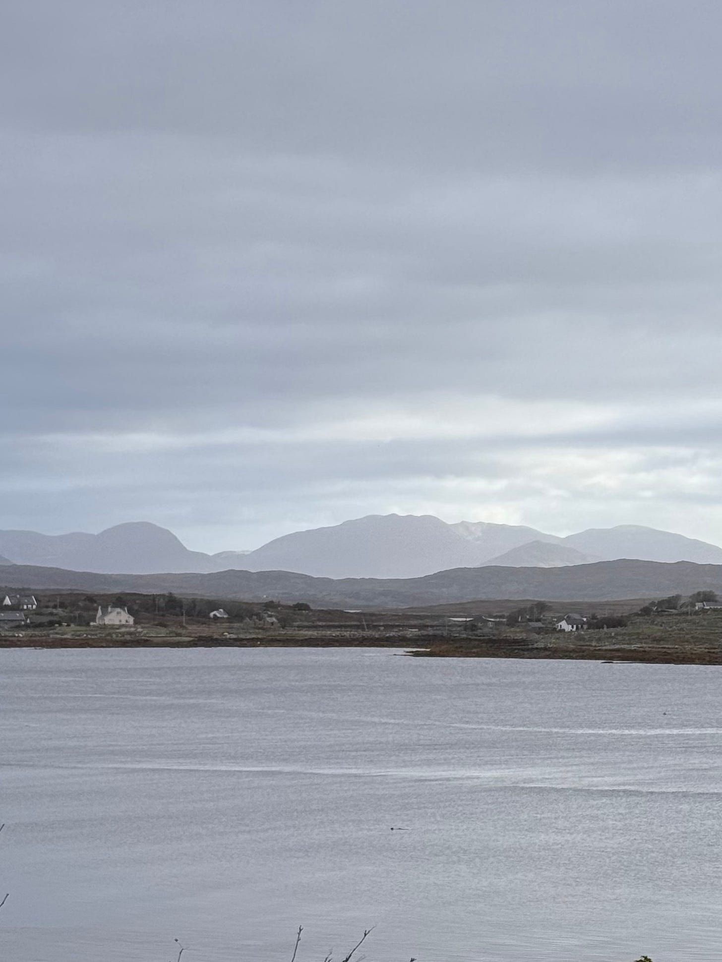 Roundstone village is a shelter in south Connemara, shielded from westerly winds by the hills that loom behind the village, with a calm landing for vessels in Roundstone Bay. Alexander Nimmo designed the harbour which was built between 1822 and 1825. The surrounding landscape looks like it has narrowly escaped from the maw of a glacier, whilst the shoreline is a scattering of small islands, so we can perhaps imagine it as the Venice of the West. “It is a strange region” wrote Tim Robinson in a little pamphlet the great cartographer published back in 1984 entitled Setting foot on the shores of Connemara. It’s a great title, and apt: arriving here feels like stepping ashore.